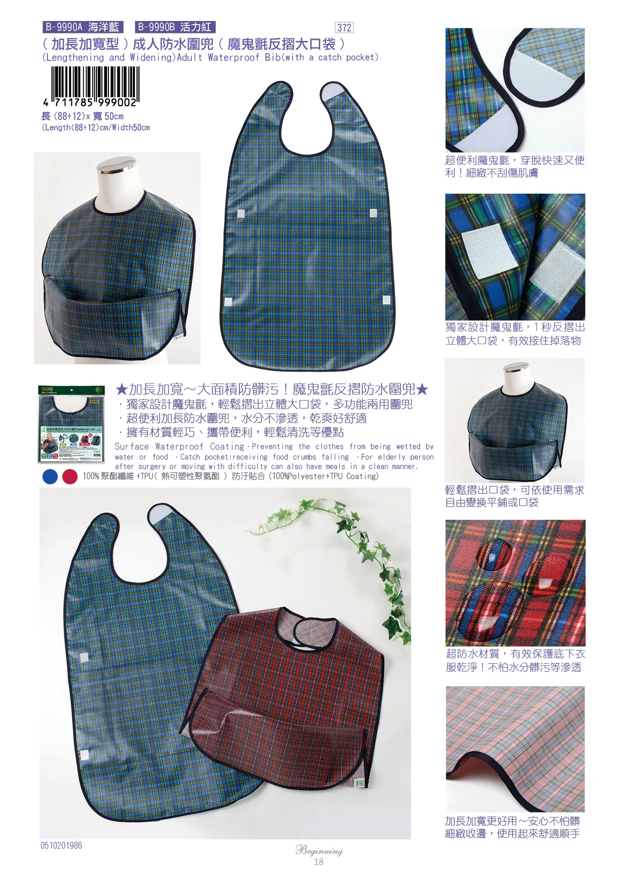 首頁 > 產品專區 > 其他 > 長青樹系列產品 > (加長加寬型)成人防水圍兜(魔鬼氈反摺大口袋)