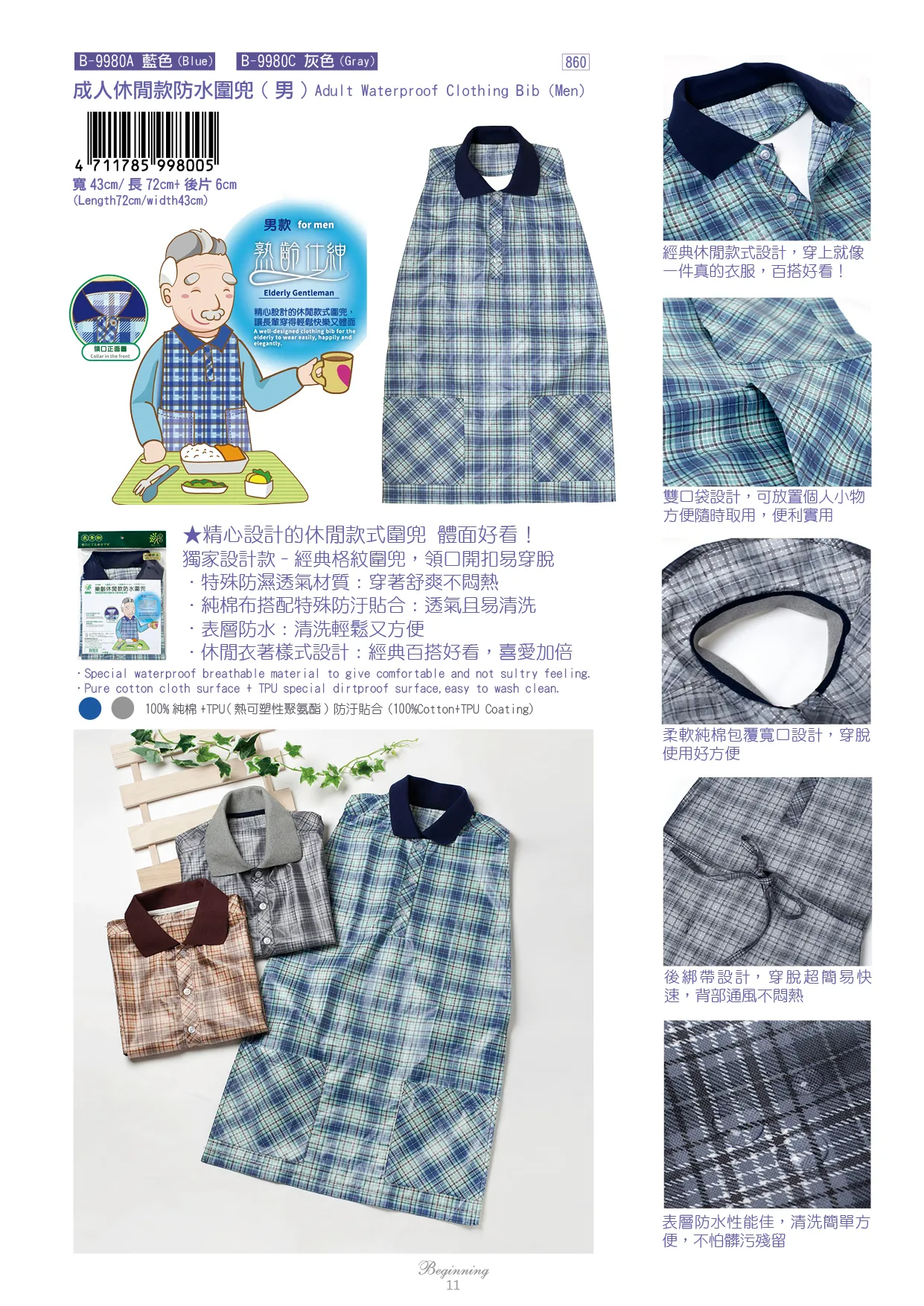 首頁 > 產品專區 > 其他 > 長青樹系列產品 > 成人休閒款防水圍兜(男)