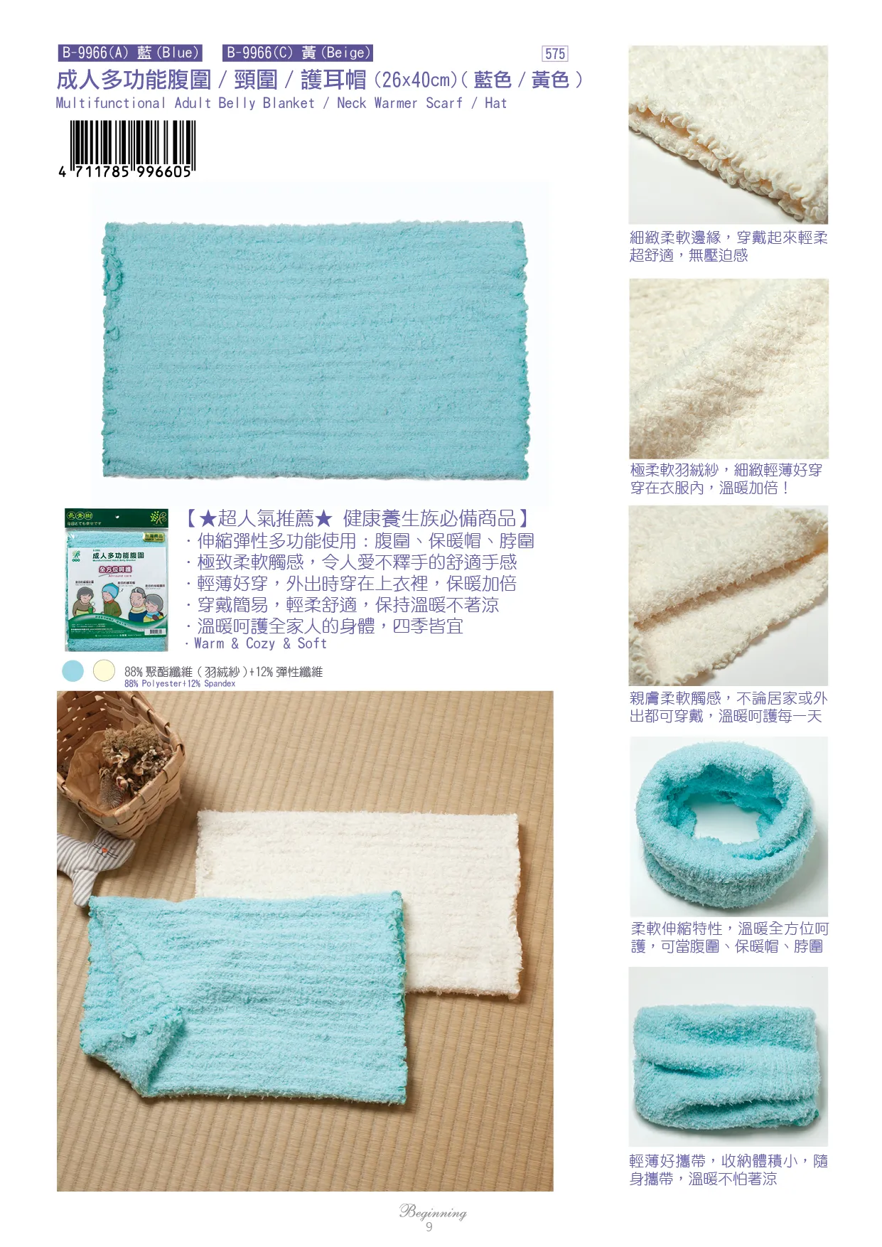 伸縮彈性多功能使用:腹圍、保暖帽、脖圍 極致柔軟觸感,令人愛不釋手的舒適手感 輕薄好穿,外出時穿在上衣裡,保暖加倍 穿戴簡易,輕柔舒適,保持溫暖不著涼 溫暖呵護全家人的身體,四季皆宜