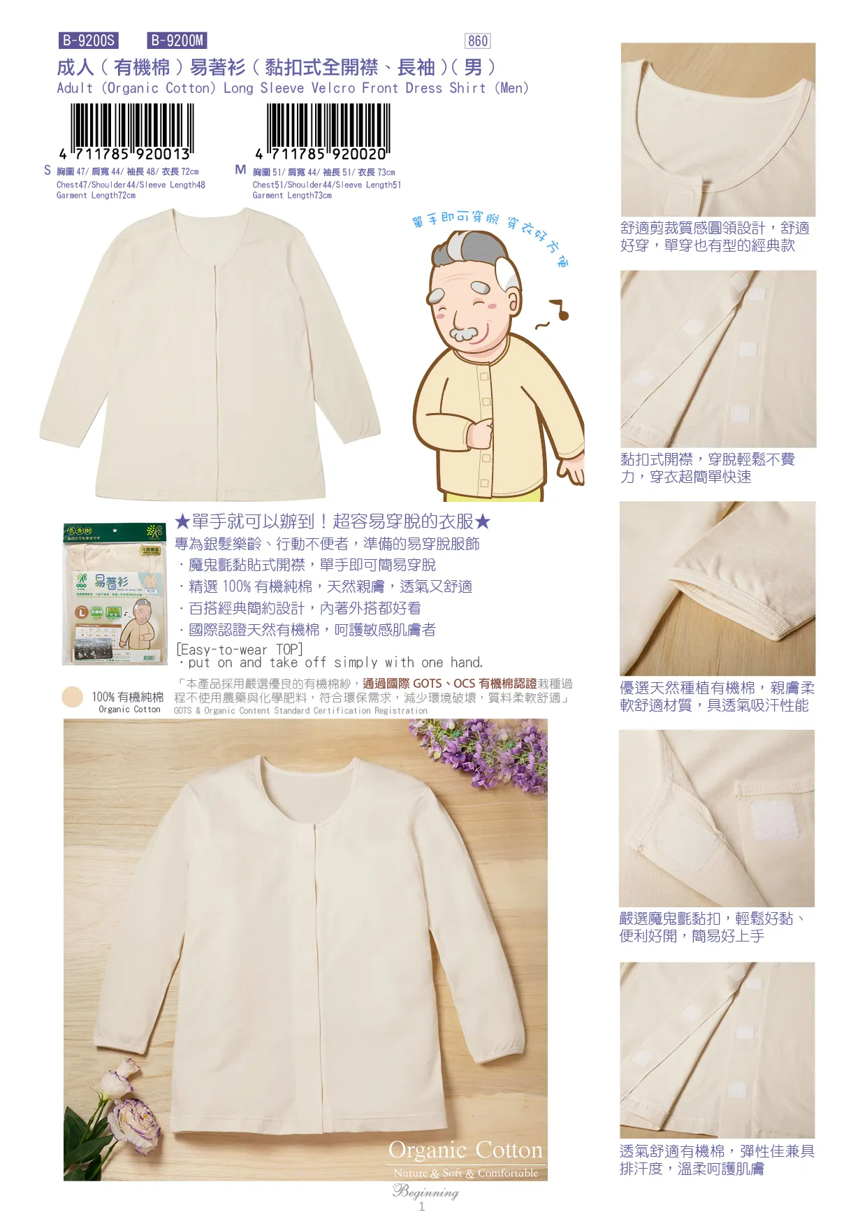 ★每個人都可以輕鬆穿脫的衣服 ·專為銀髮樂齡、行動不便者,準備的易穿脫服飾 ·魔鬼氈黏貼式開襟,單手即可簡易穿脫 ·100%有機純棉,天然親膚,透氣又舒適 ·百搭經典簡約設計,內著外搭都好看 ·國際認證天然種植有機棉,呵護敏感肌膚者